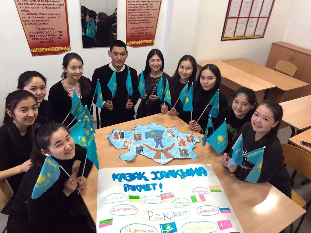В Евразийском гуманитарном институте на кафедре иностранных языков прошёл кураторский час, приуроченный Дню Благодарности. Студенты группы ИЯК-17-01 обсудили происхождение данного праздника. Прозвучали выступления и представлены презентации о событиях начала XX века, когда в Казахстан прибыли 1,1 млн. человек из России, Украины и Беларуси, о ходе коллективизации в 1930-е годы, когда были сосланы 250 тысяч раскулаченных крестьян и еще порядка 1,2 млн. человек приехали возводить промышленные объекты.
