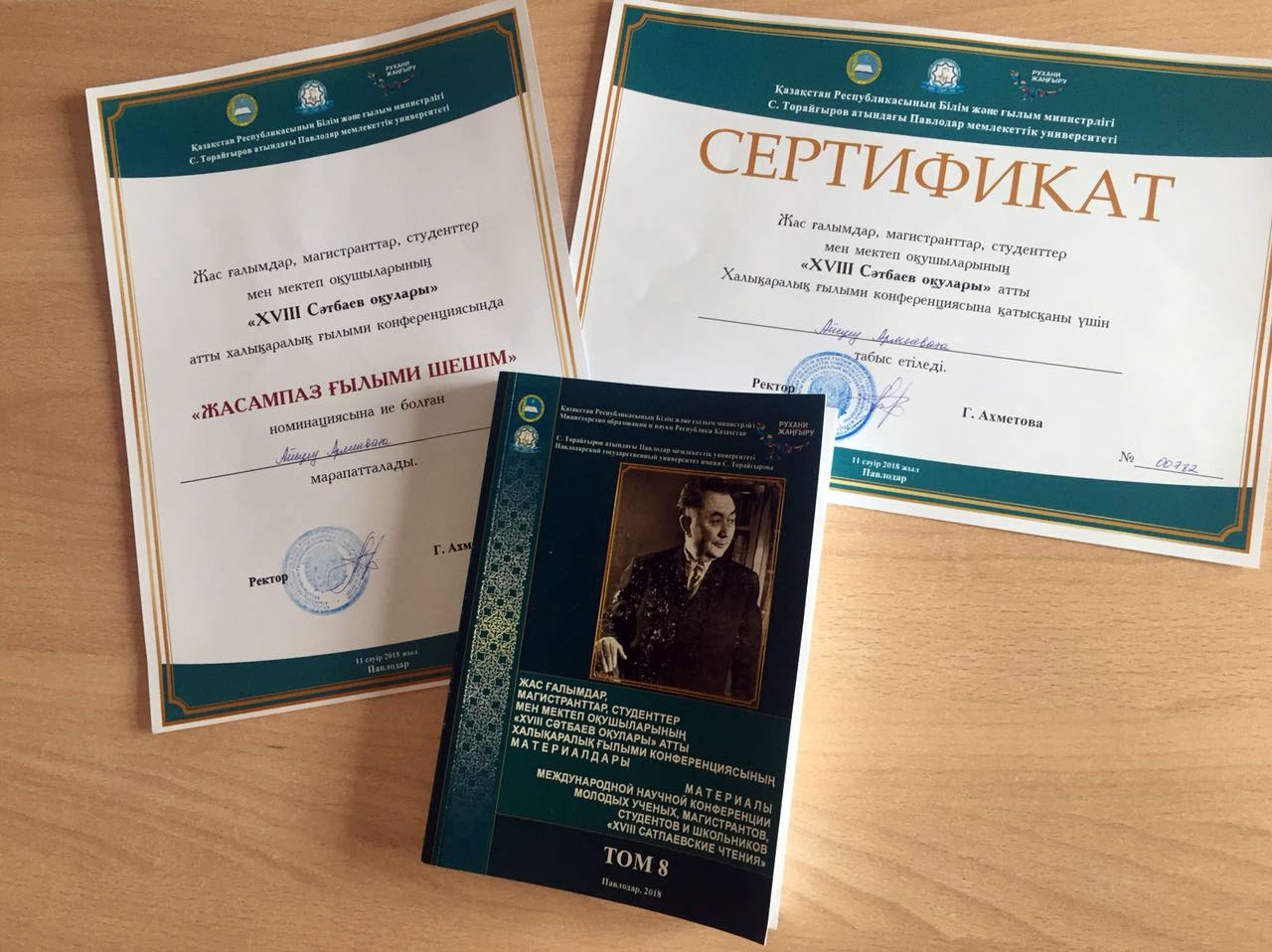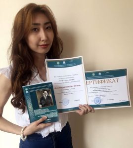 За доклад «Современные подходы к определению наркотической зависимости: обзор основных факторов в подростковом возрасте» Айсулу награждена грамотой «Жасампаз ғылыми шешім» («Креативное научное решение»). Доклад включен в сборник материалов конференции.
