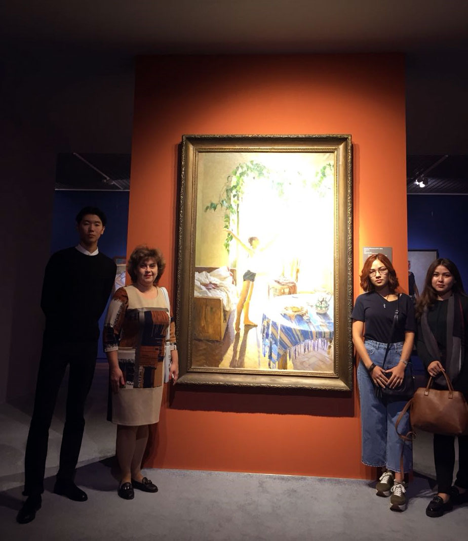 В рамках мероприятий по духовно-нравственному воспитанию студенты группы ИЯ-16-02 с куратором группы – старшим преподавателем кафедры иностранных языков Дьяченко О.В. – посетили выставку “50 шедевров ХХ века из собрания Третьяковской галереи”, экспонированной в Национальном музее Республики Казахстан. Экспозиция охватывает почти все ХХ столетие: от 1900-х до 1980-х. Студенты познакомились с представленными картинами таких мастеров, как Константин Коровин, Игорь Грабарь, Михаил Нестеров, Абрам Архипов, Константин Юон, Петр Кончаловский, Илья Машков, Аристарх Лентулов, Роберт Фальк, Павел Кузнецов, Георгий Нисский.
