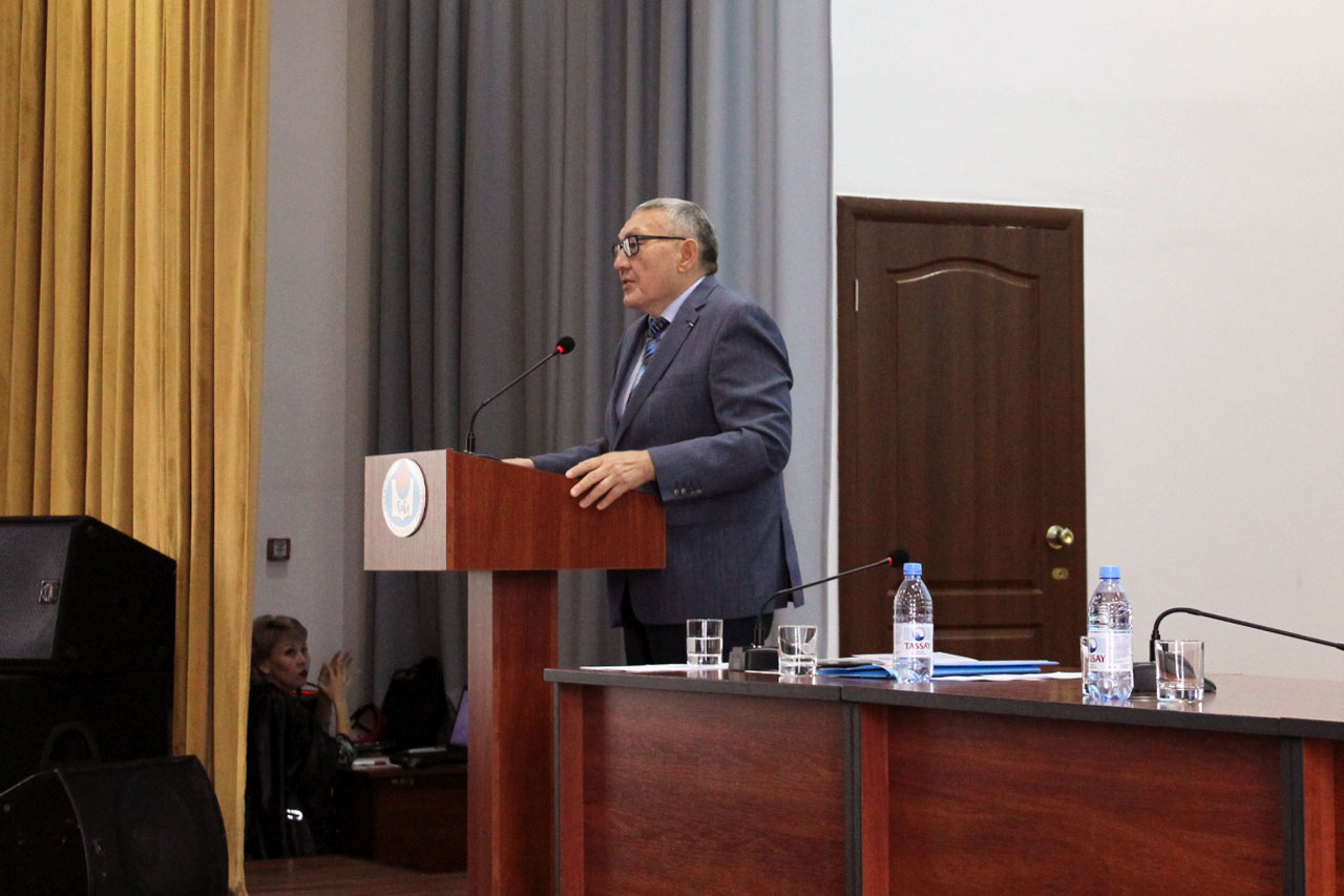 Студентов первого курса приветствовали проректор по учебной и научной работе, д.и.н., профессор К.А. Ахметов и декан института, к.ф.н., доцент К.А. Мамадил. Они рассказали об основных положениях учебной и воспитательной работы в ЕАГИ.