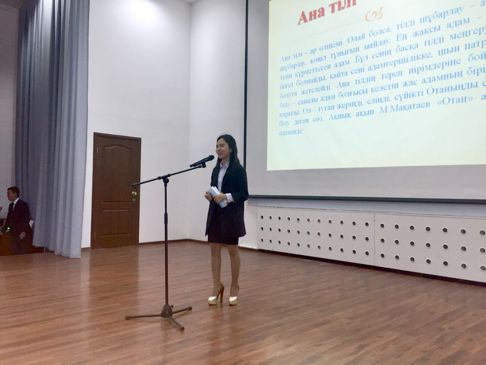 В целях продвижения государственного языка и повышения интереса представителей других национальностей к обучению казахскому языку были привлечены студенты 1-2-3 курсов специальности «Казахский язык и литература», которые приняли участие в конкурсе эссе и литературном состязании, порадовав слушателей прекрасными песнями и вдохновленной поэзией.