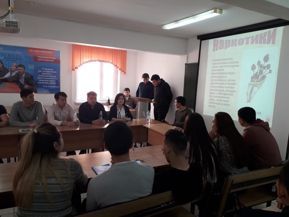 Мероприятие направлено на формирование у студентов необходимых знаний о существующей проблеме современности – наркомании; совершенствовании представлений обучающихся о пагубном влиянии употребления наркотиков на жизнь и здоровье подростков, а также способствовало формированию активной жизненной позиции по борьбе с употреблением наркотиков и других психоактивных веществ. Был проведен разговор со студентами о мерах наказания за употребление и распространение наркотиков.
