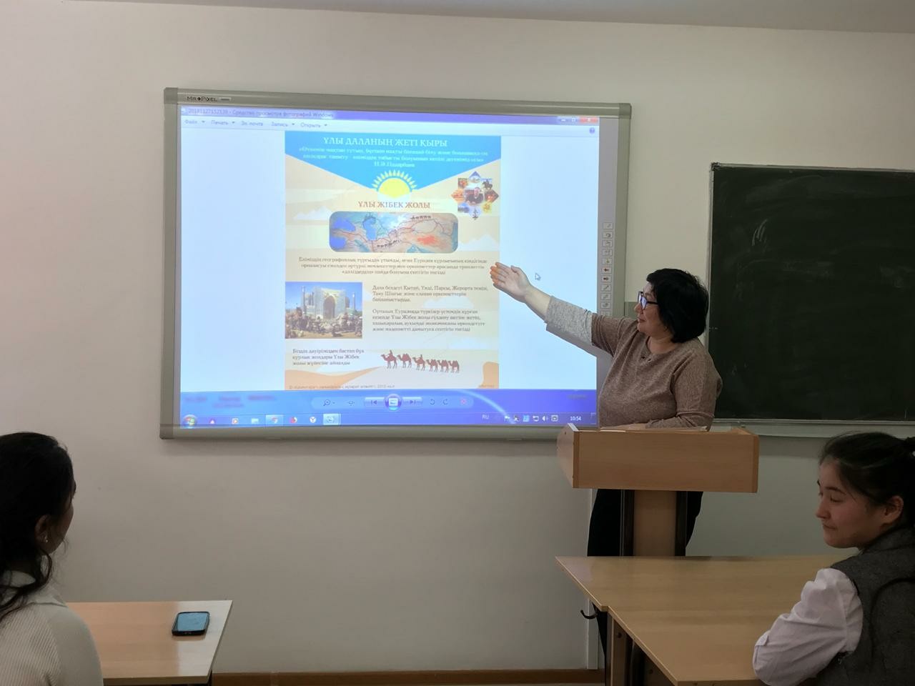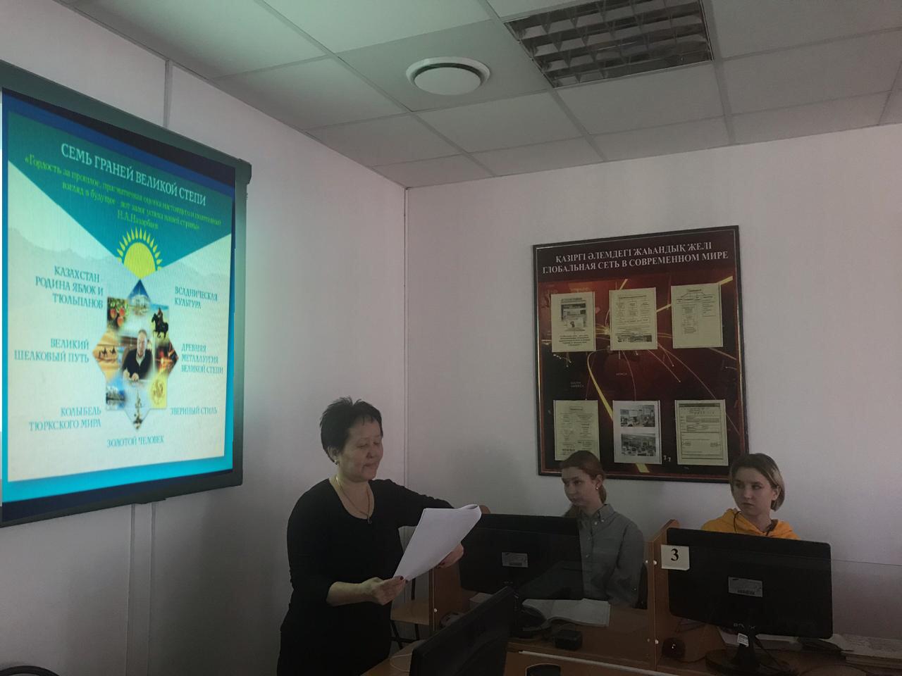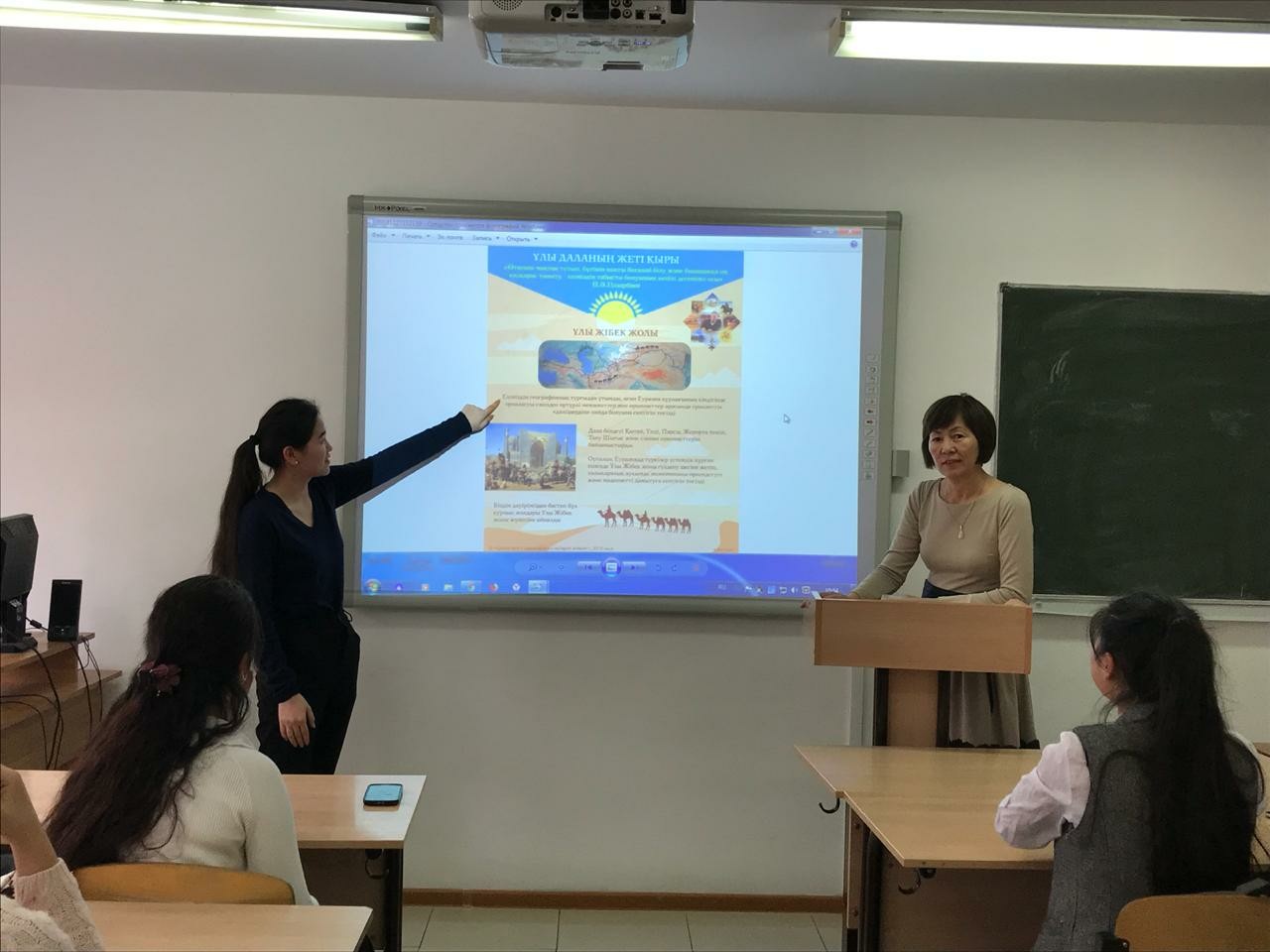 Статья президента Казахстана Н.А. Назарбаева «Семь граней Великой степи» логично продолжает инициированную ранее программу «Рухани Жаңғыру». В ней Президент объявил шесть новых крупных проектов, которые направлены на исследование казахстанской истории и популяризацию культурного наследия Казахстана. Статья Президента требует очень серьезного осмысления и качественного выполнения предложенных проектов. В группах ПДС18-01, ИЯК17-01, ИЯК17-02, ПД15-01 (кураторы Сиренова Б.А.,Ергалиева А.Н.,Умбетова К.Е., Аренова Г.У,) были проведены кураторские часы, посвященные статье «Семь граней Великой степи». Кураторы ознакомили студентов с основными положениями статьи, студенты проявили живой интерес и приняли активное участие в обсуждении статьи.