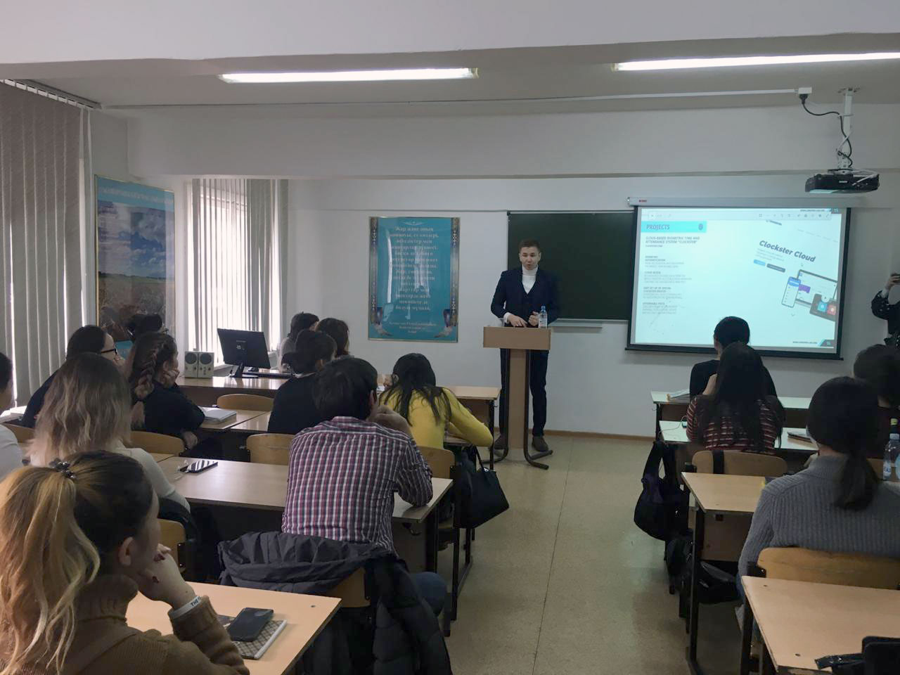 13 декабря 2018 года кафедра экономических и математических дисциплин в целях получения консультации по проекту стартап организовали круглый стол для преподавателей и студентов, пригласив члена совета директоров компании Clocrster PTE Рыскалиева Е. Т. В ходе встречи студенты задавали интересующие их вопросы и получили множество ответов.