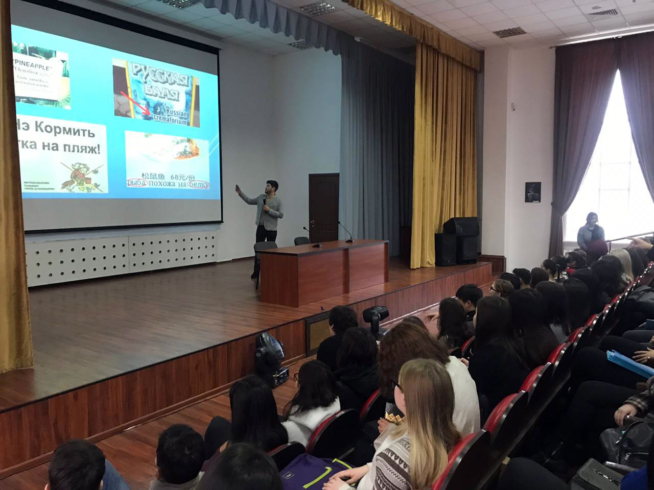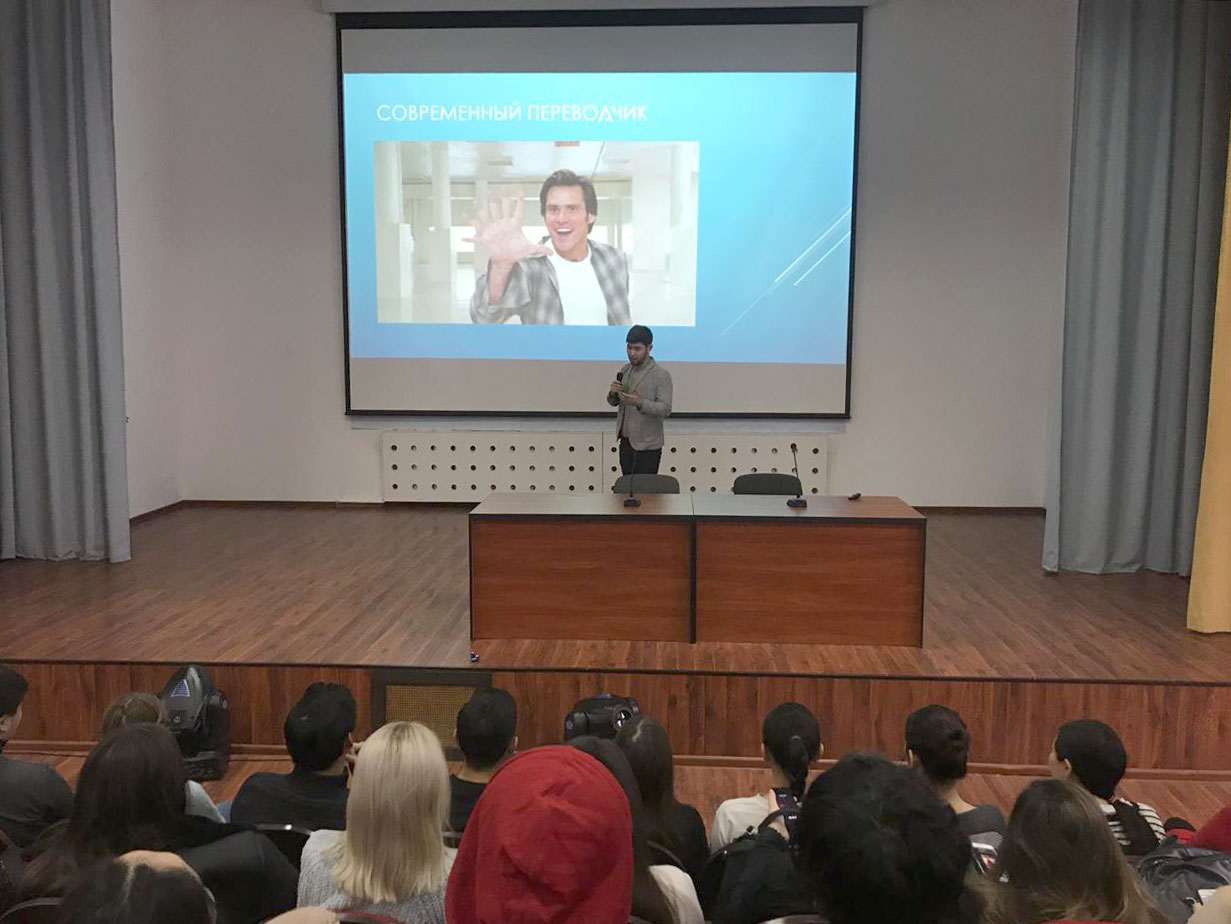 Лекцию на тему «Кто такой переводчик? Введение в переводческую отрасль» читал Арапбай Альжан Жаксыбекулы, управляющий директор «Gala Translations», письменный и последовательный переводчик английского и китайского языков, руководитель по сотрудничеству с вузами АПППК. Студенты проявили искренний интерес и задавали много вопросов о профессиональной деятельности переводчиков. Лектор поделился опытом работы и рассказал о различных видах перевода и тонкостях профессии. Лекция была очень интересной и полезной для будущих переводчиков.