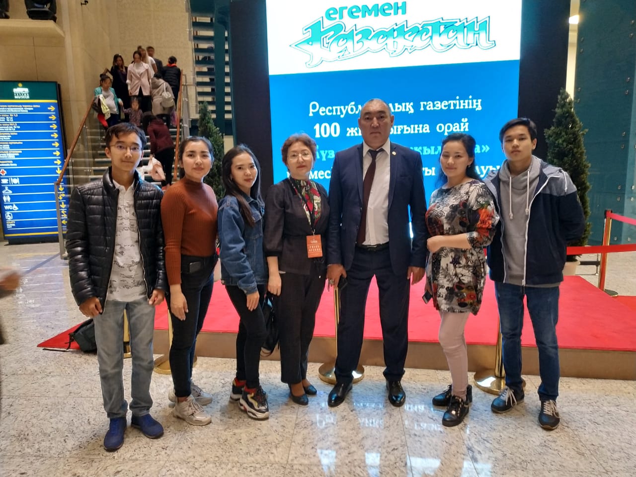 Студенты-активисты литературно-творческого объединения «Аққу» вместе с руководителем, к.ф.н., доцентом Л.Н. Дауренбековой приняли участие в акции «Ночь музеев» в Национальном музее Республики Казахстан. В рамках акции состоялось торжественное открытие выставки под названием «Столетняя летопись» по случаю празднования 100-летия газеты «Егемен Қазақстан», а также прошел творческий вечер «Ақшамдағы ақындар жыры» под руководством Даулеткерей Капулы. Студенты ознакомились с культурно ценными предметами, различными экспонатами этнографического зала и зала «Асыл Мұра». Акция полезна тем, что она знакомит молодое поколение национальными ценностями, историей, культурой и традициями нашего народа.