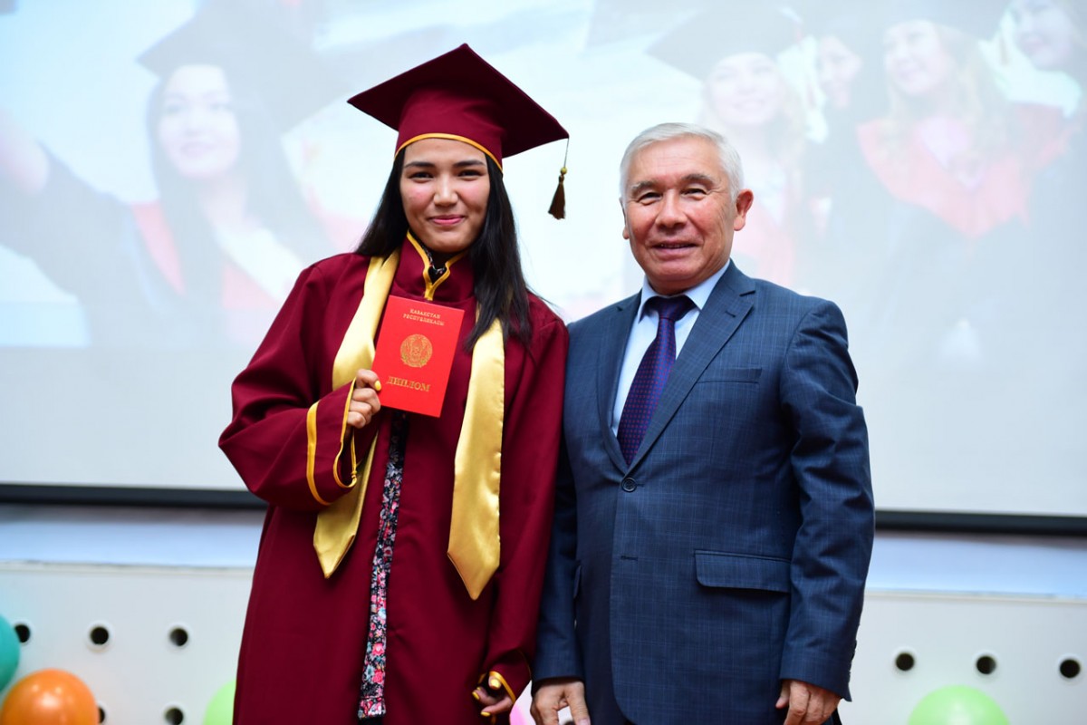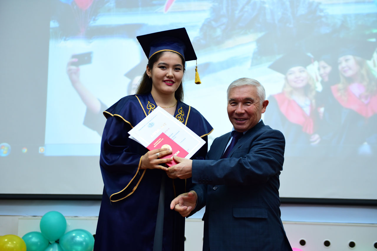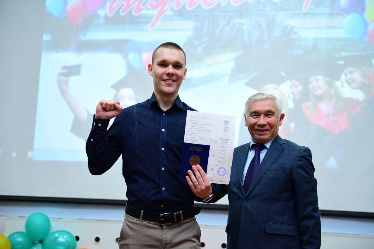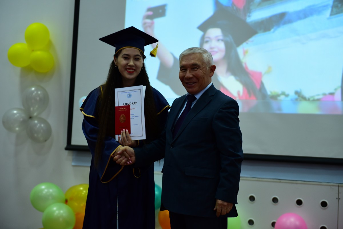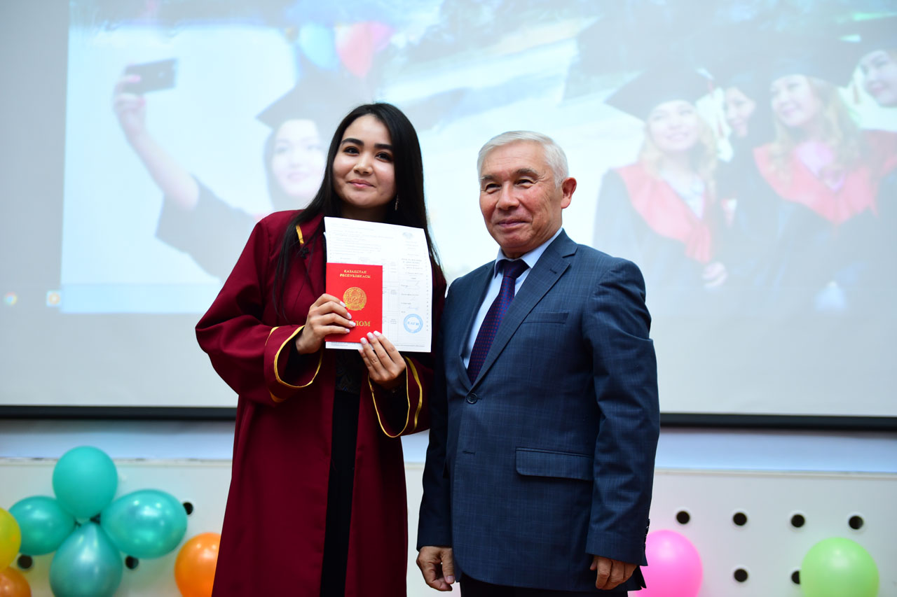 Вчерашних студентов поздравили: проректор по учебной и научной работе, доктор исторических наук, профессор Ахметов К.А. С приказом о присуждении академической степени бакалавра ознакомил выпускников начальник отдела мониторинга качества образовательного процесса Байльденов Б.Т.