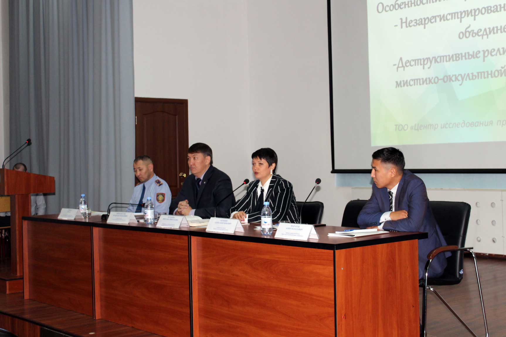 Модератором данной встречи выступила проректор по воспитательной работе ЕАГИ, к.п.н., профессор Я.Н. Оспанова, которая отметила, что профилактика экстремизма в молодежной среде – это одна из первоочередных задач образовательной сферы и общества в целом, это сложная социально-психологическая проблема, которая в современных условиях стала актуальной для всех государств мира. Выступающими в ходе лектория были затронуты очень важные и актуальные для студенчества вопросы, касающиеся экстремизма, религиозных неформальных объединений. Студентов проинформировали о существовании различных экстремистских организаций, о террористических актах, которые проводятся по всему миру, всевозможных методах агитации террористов среди молодежи. Дискуссию вызвало обсуждение факторов риска, приводящих к экстремизму в молодежной среде, а именно влияние отдельных субкультур на формирование экстремизма среди молодежи. По обсуждаемой проблеме были также представлены видеоматериалы и социальные ролики.