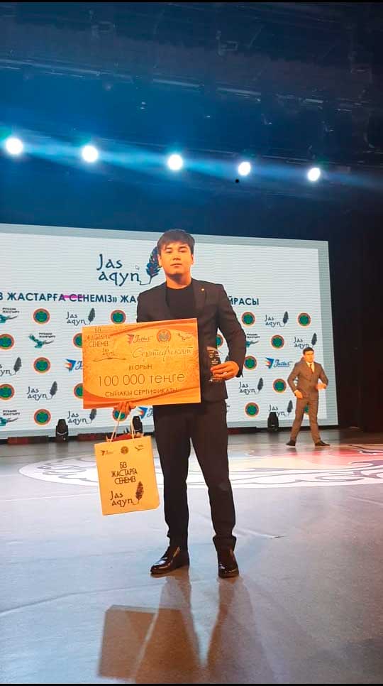 Поздравляем студента 1 курса образовательной программы 6В01701 – «Казахский язык и литература» Омирбекова Нурдаулета, занявшего призовое ІІІ место на конкурсе молодых акынов «Мы верим в молодежь», организованного акиматом города Нур-Султан в честь Года молодежи.