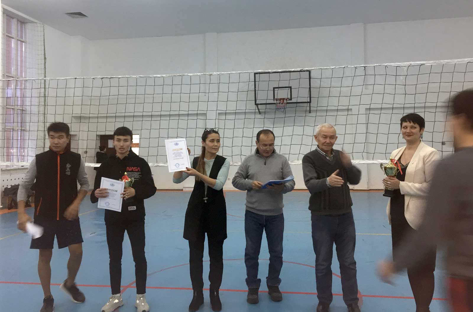 19-20 ноября в рамках Года молодежи в Евразийском гуманитарном институте прошло соревнование по волейболу. В турнире участвовали 11 команд разных специальностей и команда колледжа ЕАГИ. В упорной борьбе кубок за 1 место завоевала команда специальности «Юриспруденция» «Астрал», 2-ое место заняла команда специальности «Юриспруденция» «NASA» и 3-е место – команда колледжа ЕАГИ. На церемонии награждения победителей поздравили – проректор по воспитательной работе, к.п.н., профессор Оспанова Я.Н., руководитель спортивного клуба ЕАГИ Балтабеков Р.С., преподаватель физкультуры, к.п.н., доцент Ташкеев Д.С., а также председатель Комитета по делам молодежи, магистр Тырнахан Н.Т. Лучшим игроком соревнования признан студент ЕАГИ Альжанов Арсен.