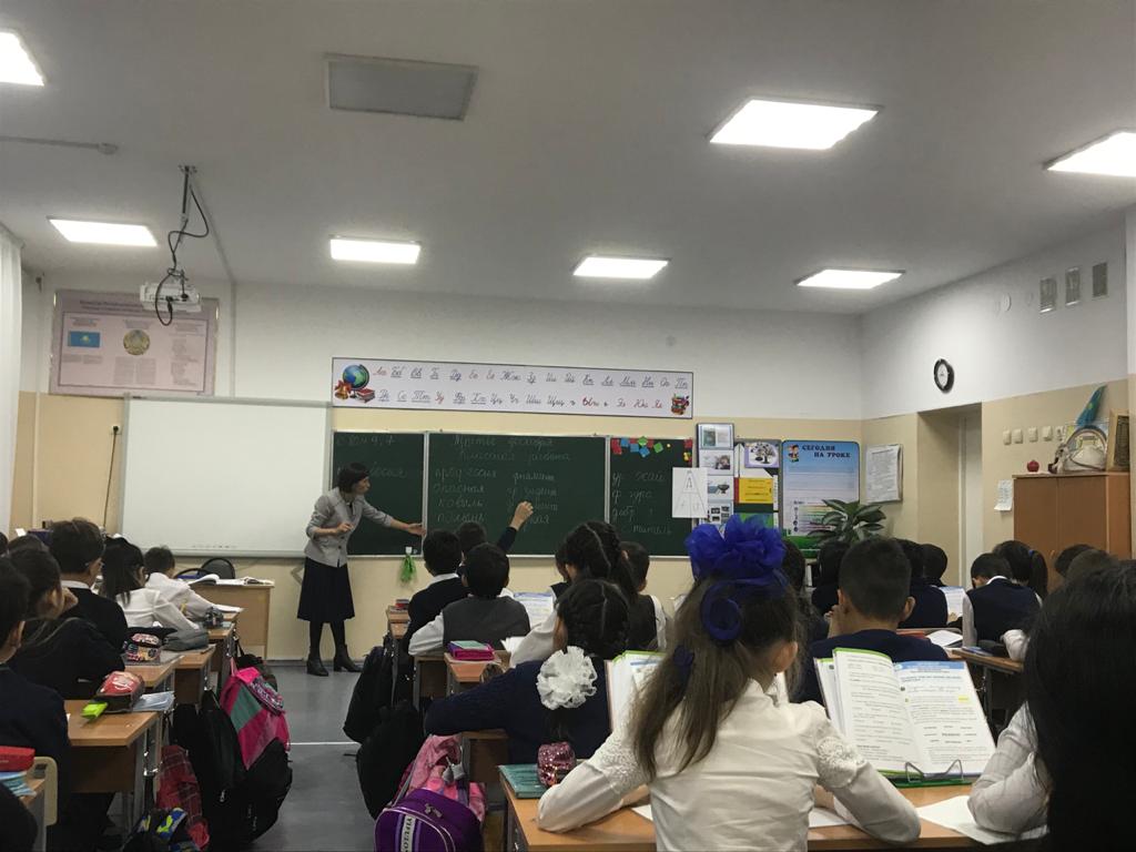 Студенты 3-го курса, разбившись по подгруппам, посетили несколько уроков педагогов, прошедших обучение в рамках обновления содержания образования. После уроков состоялось обсуждение в формате семинара, на котором заместитель директора школы – Конурова Зухра Канатовна – рассказала о программе, направлениях деятельности школы, о трудностях и радостях школьного учителя.