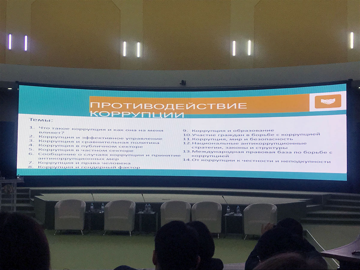 В ходе конференции участники были ознакомлены с новыми методиками, а также ресурсами, предлагаемыми ООН, где можно получить информацию для проведения тематических семинаров в своих учебных заведениях. Как известно, новому поколению реформаторов необходимо уделять повышенное внимание отчетности и честности глобального руководства в сферах бизнеса, политики, СМИ и гражданского общества. Привлечение молодежи и расширение их возможностей является ключом к устойчивым решениям в борьбе с коррупцией.
