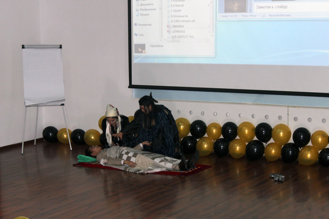 Преподаватели русского языка кафедры казахской и русской филологии организовали в институте литературно-музыкальный вечер «Есіңе мені алғайсың» в рамках программы «Рухани жаңғыру». Студенты 2 курса образовательной программы «Казахский язык и литература» представили постановку по поэме М.Макатаева «Аққулар ұйықтағанда» и смогли донести идею произведения акына. Они также прочитали стихотворения М.Макатаева на казахском и русском языках и исполнили песни, написанные на слова поэта.