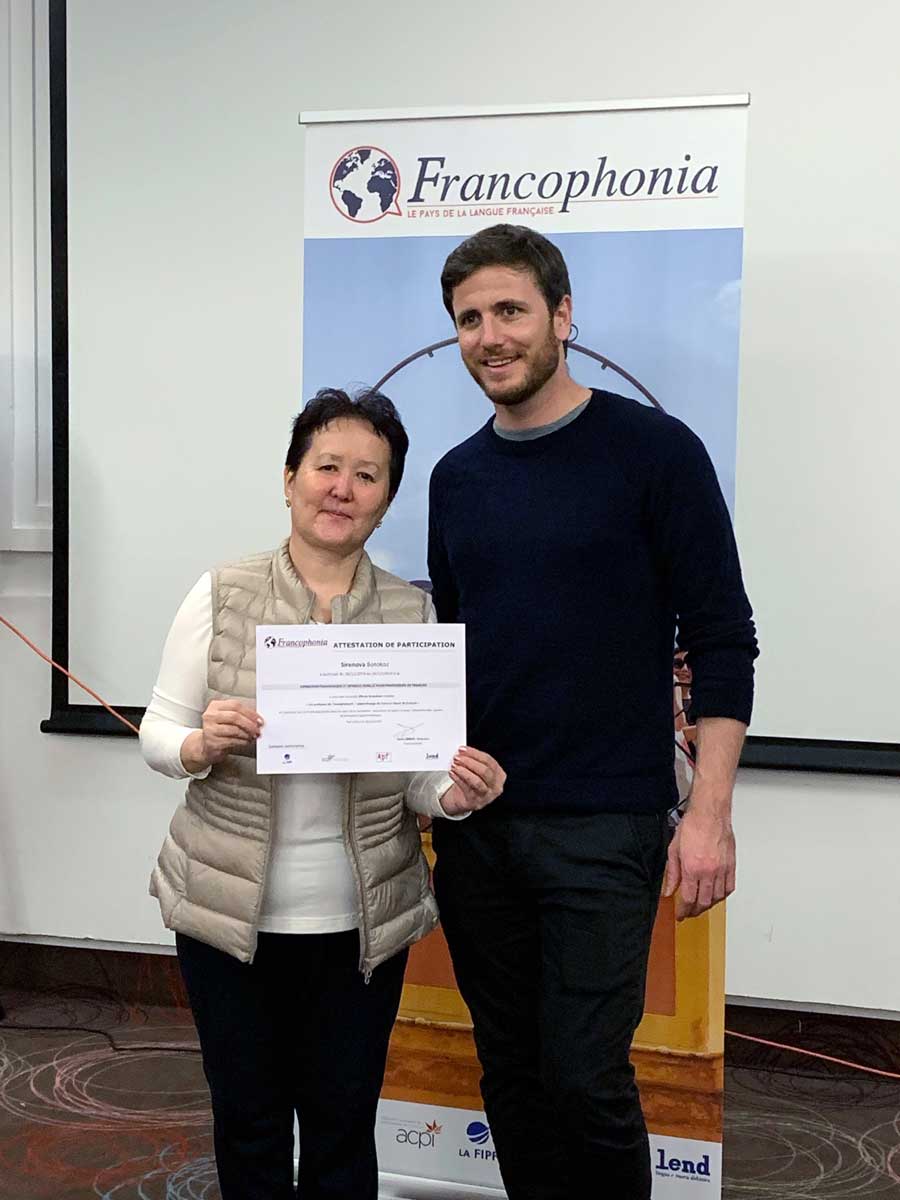В завершение преподаватели из Казахстана подготовили презентацию о нашей стране, исполнили казахские народные песни и танцы. Были вручены сертификаты о прохождении курсов повышения квалификации преподавателей французского языка.