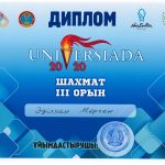 Сборная нашего института по шахматам, занявшая третье место, была в составе следующих студентов: Мерген Әділхан (гр.ИК-18-01), Арманұлы Ескендір (гр.ПМНО-18-01) и Тойшыбай Лазима (гр.ДОВК-18-01).