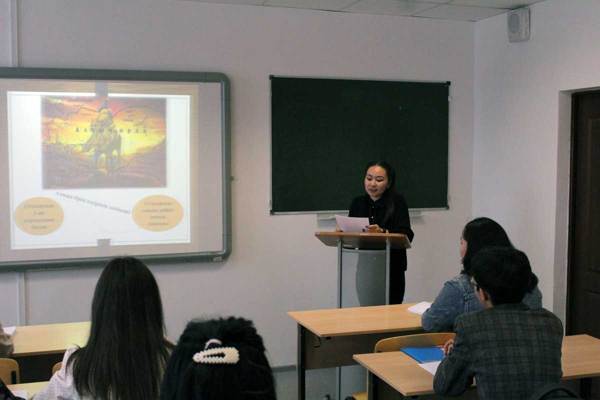 26 февраля 2020 года кафедра казахской и русской филологии провела конкурс написания научно-исследовательских работ на тему «Хиссы-эпосы в литературе эпохи Золотой Орды». На мероприятие, организованное среди первых и четвертых курсов, поступило 9 работ. Участники защитили проекты, высказали свои обосновательные и значимые мнения. Были награждены лучшие работы.
