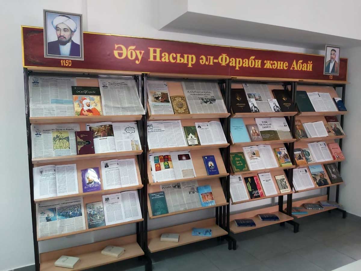 На книжной выставке из фонда библиотеки представлены исследования, раскрывающие духовный облик Абу Насыр аль-Фараби – ученого-энциклопедиста; иллюстрируются высказывания ученых о значении аль-Фараби в развитии мировой общественно-философской мысли и его место в истории культуры (Гафуров Б.Г., Касымжанов А.Х. Аль-Фараби в истории культуры; Касымжанов А.Х. Аль-Фараби; Көбесов А. Әл-Фараби мен Абайды қатар оқығанда; Қожақ Ж.А. Әл-Фараби; Кул-Мухаммед М. Аль-Фараби. История, личность, время).