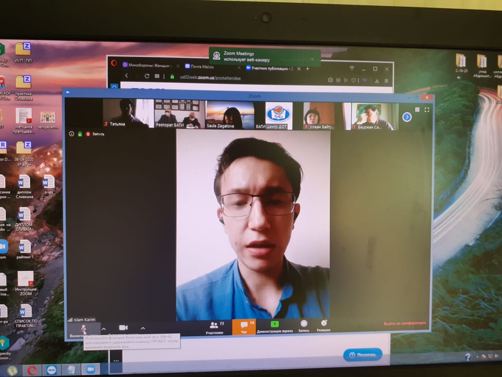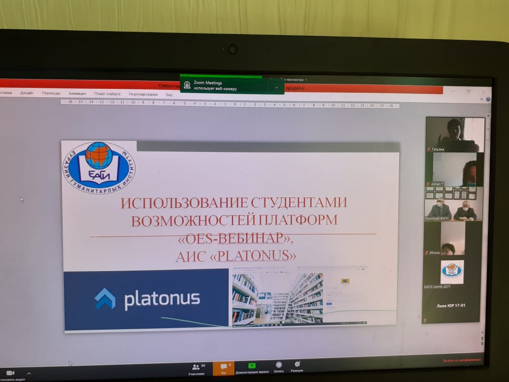 Участники вебинара проявили интерес к выступлениям специалистов Центра дистанционного обучения Баймамырова Б.А. и Темиргалиевой А.С., которые презентовали возможности образовательной платформы «OES-Вебинар», АИС «Platonus». В ходе вебинара студентам была представлена информация об особенностях организации учебного процесса на платформе Zoom.