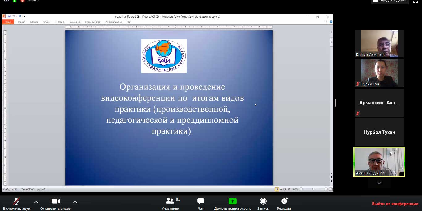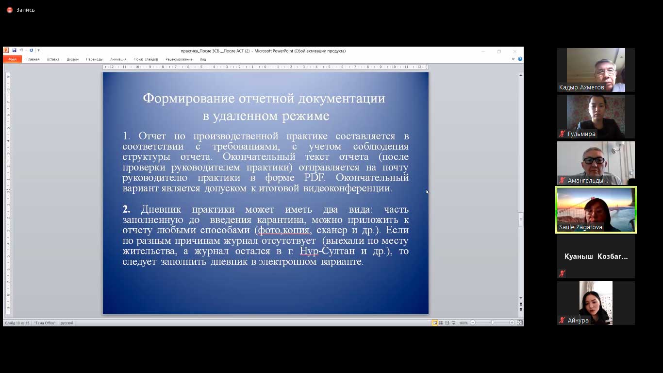 Открыли видеоконференцию первый проректор А.Д. Исмаилов и проректор по учебной и научной работе К.А.Ахметов с разъяснениями о новых формах коммуникации в удаленном режиме, о проводимой работе со студентами, находящимися в отдаленных районах. Кроме того, был сделан акцент на внесенные дополнения в академическую политику института по вопросам организации защиты отчетов по производственной практике.