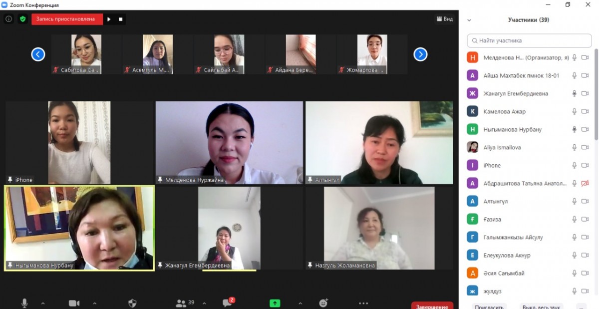 2 октября 2020 года в рамках празднования Дня учителя научно-методический кружок «Асыл қазына» и студенты групп ПМНОк-17-01, ПМНОк-18-01 провели на платформе ZOOM праздничное онлайн-мероприятие «Ұстаз-ұлы тұлға».