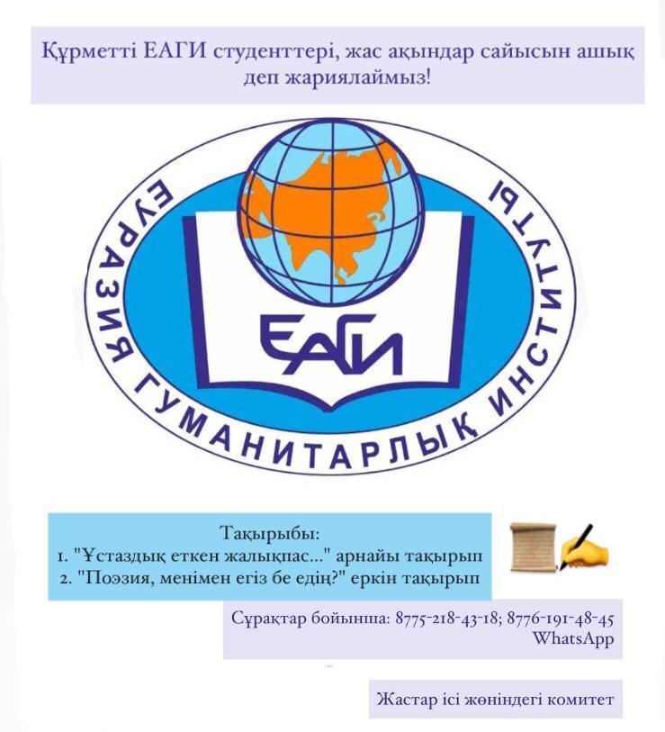 Стихотворения должны быть высланы до 5 октября в формате Microsoft office Word с полным указанием ФИО, контактного номера, учебной группы участника по номерам WhatsApp: 8775-218-43-18; 8776-191-48-45.