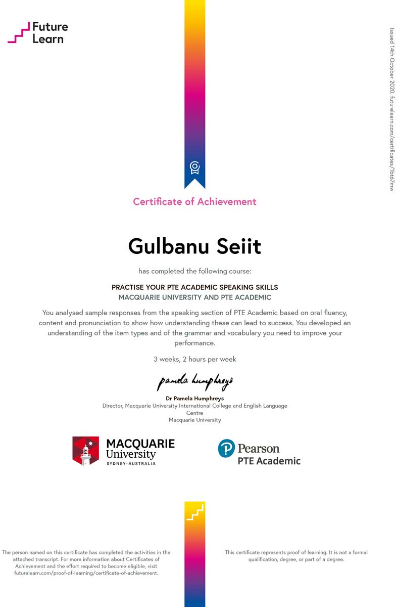 В октябре 2020 года доцент кафедры иностранных языков Г.У. Аренова, старший преподаватель А.М. Сарсенова, а также студенты выпускных курсов прошли языковые онлайн-курсы «Practise your PTE Academic Speaking Skills”, разработанные Австралийским Университетом Маккуори (Macquarie University, Sydney), а также «Introduction to business management»  при Кингз колледж в Лондоне (King’s College London). Данные курсы разработаны с целью повысить языковую компетенцию,  активизировать разговорные навыки и изучить ключевые аспекты управления бизнесом. Продолжительность курсов от двух до четырех недель в зависимости от выбранной тематики. Курсы можно было пройти в любое удобное время.Все участники курсов получили огромный опыт общения с преподавателями и студентами ведущих вузов Европы. По завершении курсов участникам были вручены электронные сертификаты.