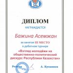 III место – Бажина Асемжан (группа ПД-17-01).
