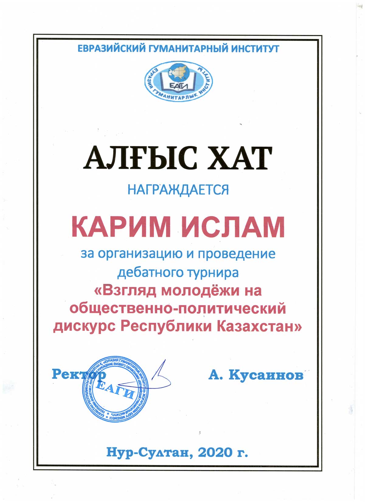 II место – Мерген Әділхан (группа Ик-18-01),