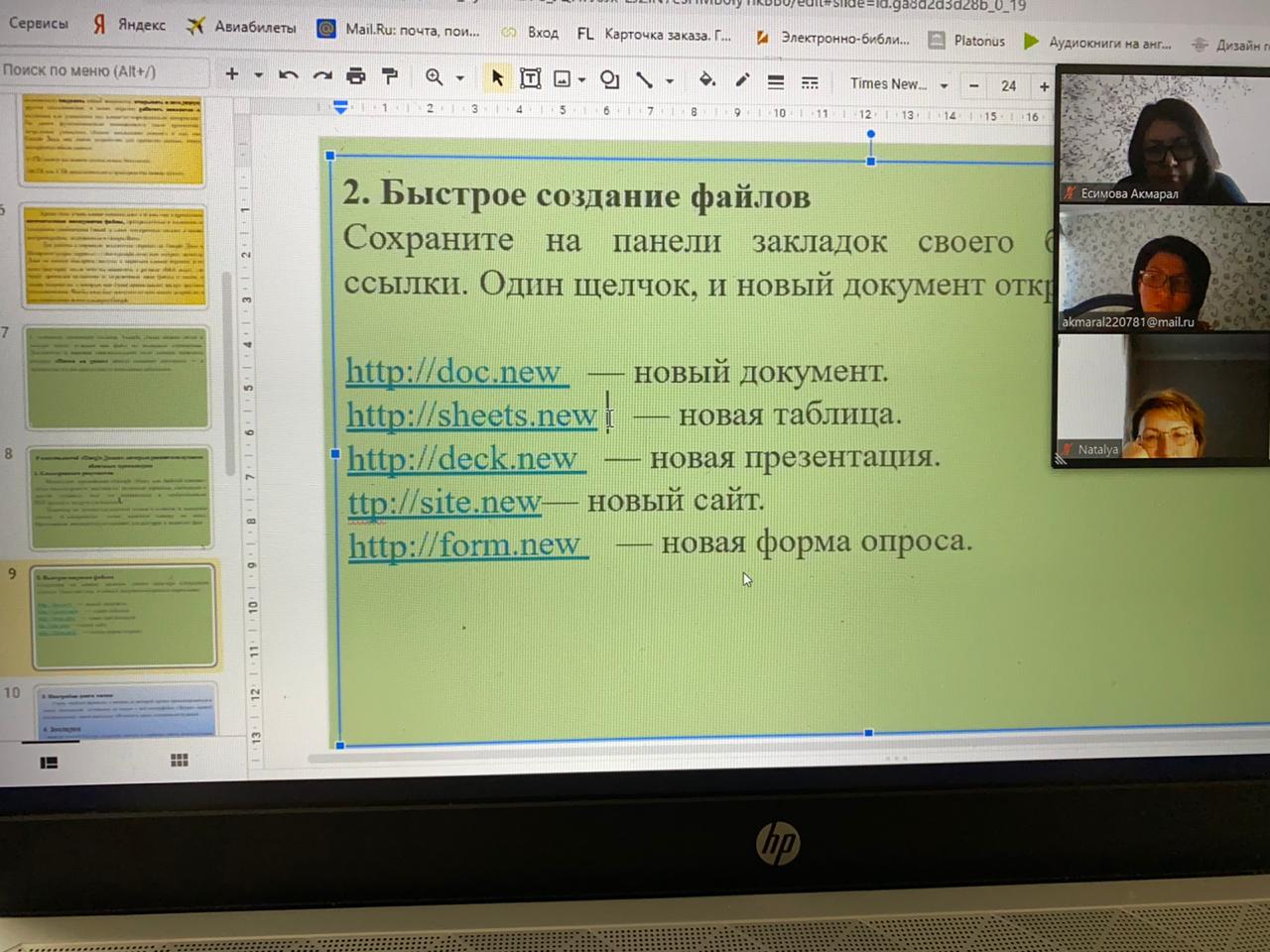 На следующий день 10 ноября 2020 года учителя английского языка  школы-лицея №72 КосжановаА.С. и Байжуманова Д.Б. провели встречный онлайн-семинар на платформе Zoom, для преподавателей кафедры на тему: «Использование информационных технологий  для формативного оценивания при дистанционном обучении». Коллеги поделились опытом применения  образовательной платформы Google classroom.Участники семинара получили  полезную информацию. Преподаватели кафедры иностранных языков и учителя английского языка школы-лицея № 72 обменялись опытом и выразили уверенность в дальнейшем  плодотворном сотрудничестве.