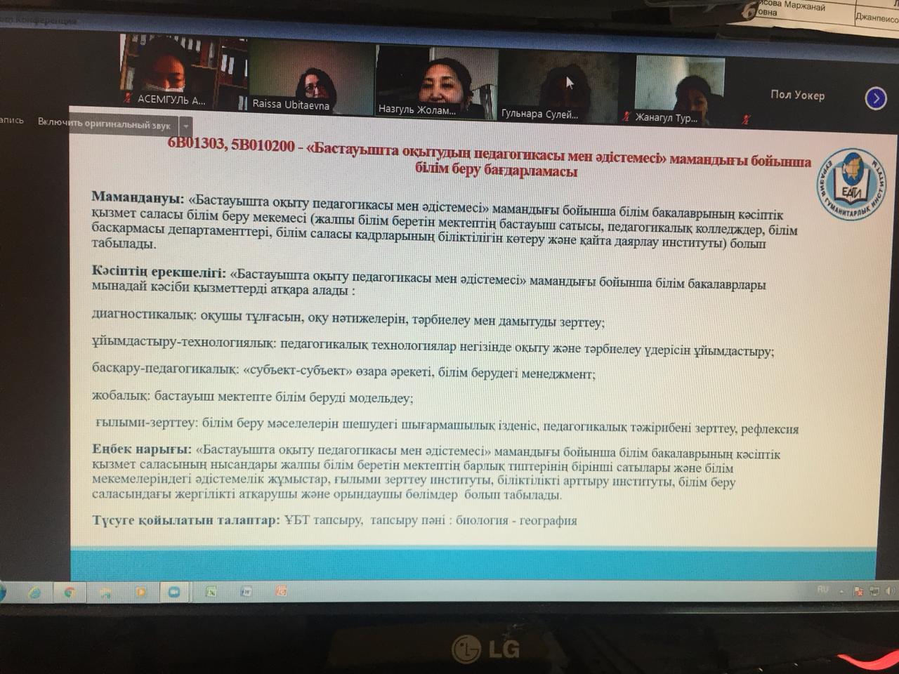 Профориентационный онлайн-семинар открыла заведующая кафедрой педагогики, профессор Н.Т. Ныгыманова.