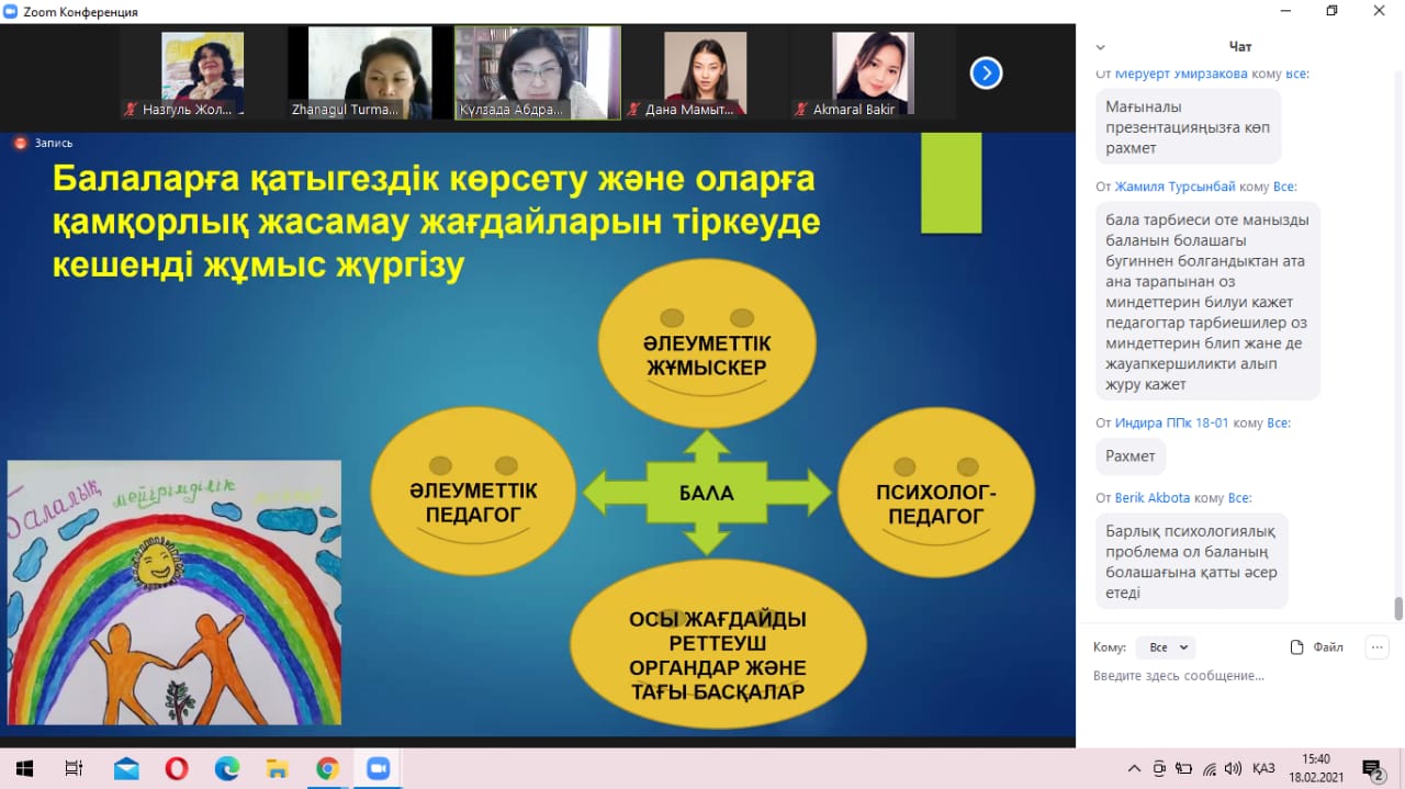 18-29 января 2021 года старшие преподаватели кафедры педагогики Турманова Ж.Е., Болатбекова Н.Ж., Аязбаева А.Т., Бухарова А.Б. участвовали в онлайн-тренинге для тренеров по совместному проекту ЮНИСЕФ, Министерства труда и социальной защиты населения РК и ЕНУ им. Л.Н. Гумилева и программе, разработанной РОО «Национальный альянс профессиональных социальных работников» в рамках проекта «Развитие психолого-социальной поддержки и адаптации детей и подростков и их родителей от распространения эпидемии ВИЧ-инфекции в Республике Казахстан».