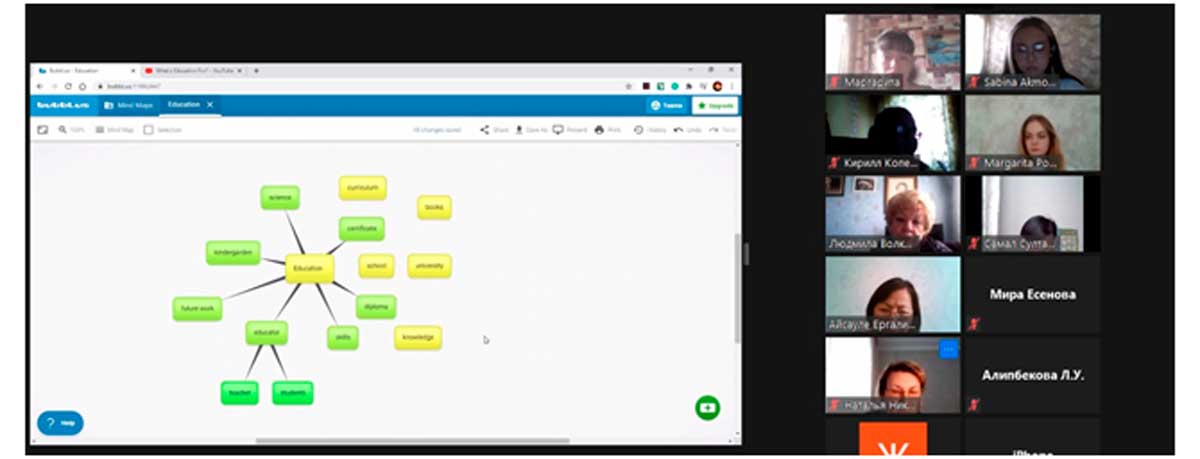 На занятии студенты работали с mind-mapsна платформе Bubble.us, просматривали и обсуждали видео под названием “WhatisEducation”. Целью занятия было научиться говорить о положительном и отрицательном личном опыте обучения. Для этого студенты прослушали монологи людей, делящихся своим опытом, работали со словами, связанными с целью урока и обучением.