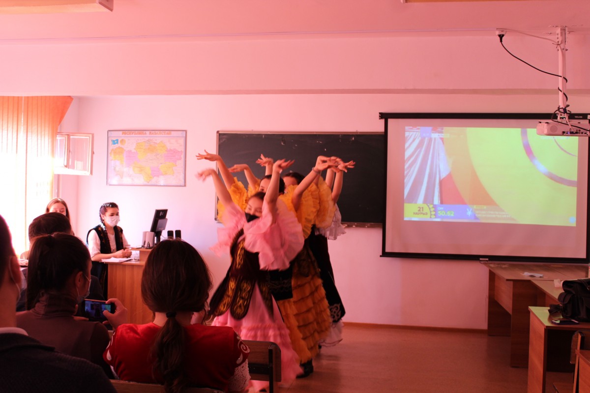 Студенты рассказали об исторических и официальных источниках, связанных с праздником наурыз мейрамы, показали основные цели, значимость темы в слайд-презентации и выступили с докладом.