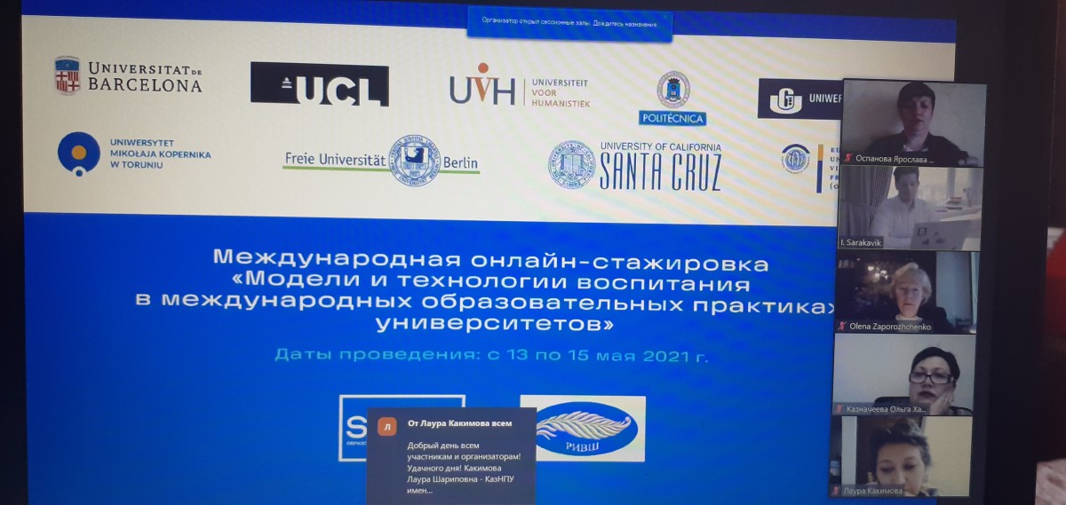 В рамках онлайн-стажировки участники ознакомились с опытом Университета Барселоны (Испания), Университета Гуманистических Исследований в Утрехте (Нидерланды), Свободного Университета Берлина (Германия), Университетского Колледжа Лондона (Великобритания), Европейского университета Виадрина (Германия), Гданьского Университета (Польша), Мадридского Политехнического Университета (Испания), Университета Николая Коперника (Польша).