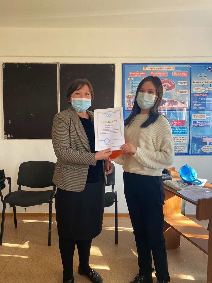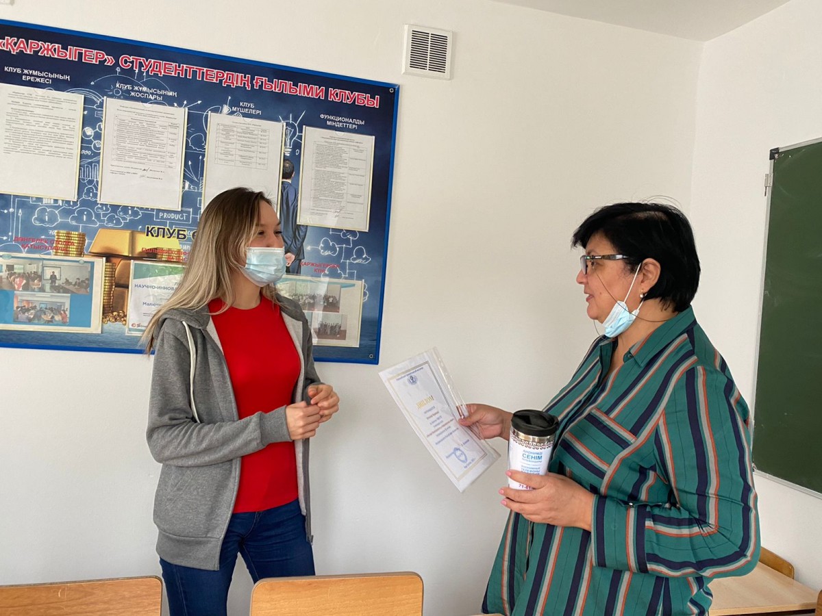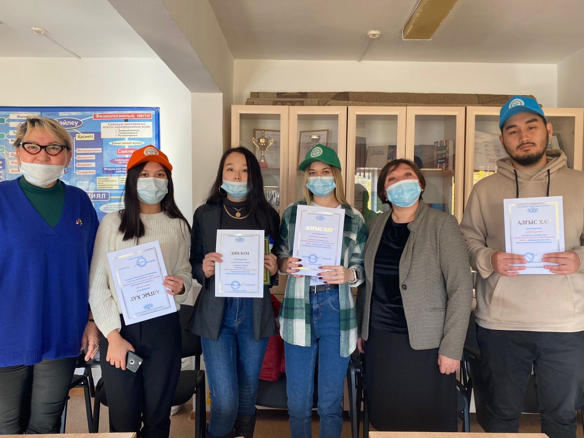 Победители конкурса – Штеккер Надежда ( группа Ф-18-01) и Сабыржанова Сабина (группа ПМНОК-18-01) – были награждены грамотами и ценными призами. Также благодарственными письмами и подарками были отмечены Гаврилова Елизавета (группа НО-19- 01), Әлібек Аружан (группа ППК-19- 01), Аскаров Дархан (группа ПП- 21-01).