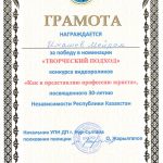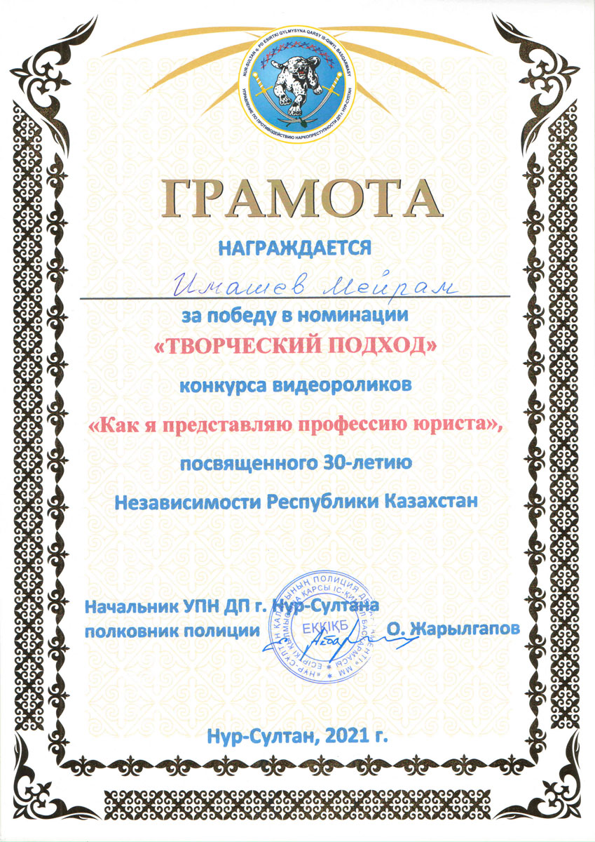 «Лучший творческий подход» – Имашев Мейрам, студент группы ЮР-19-01.