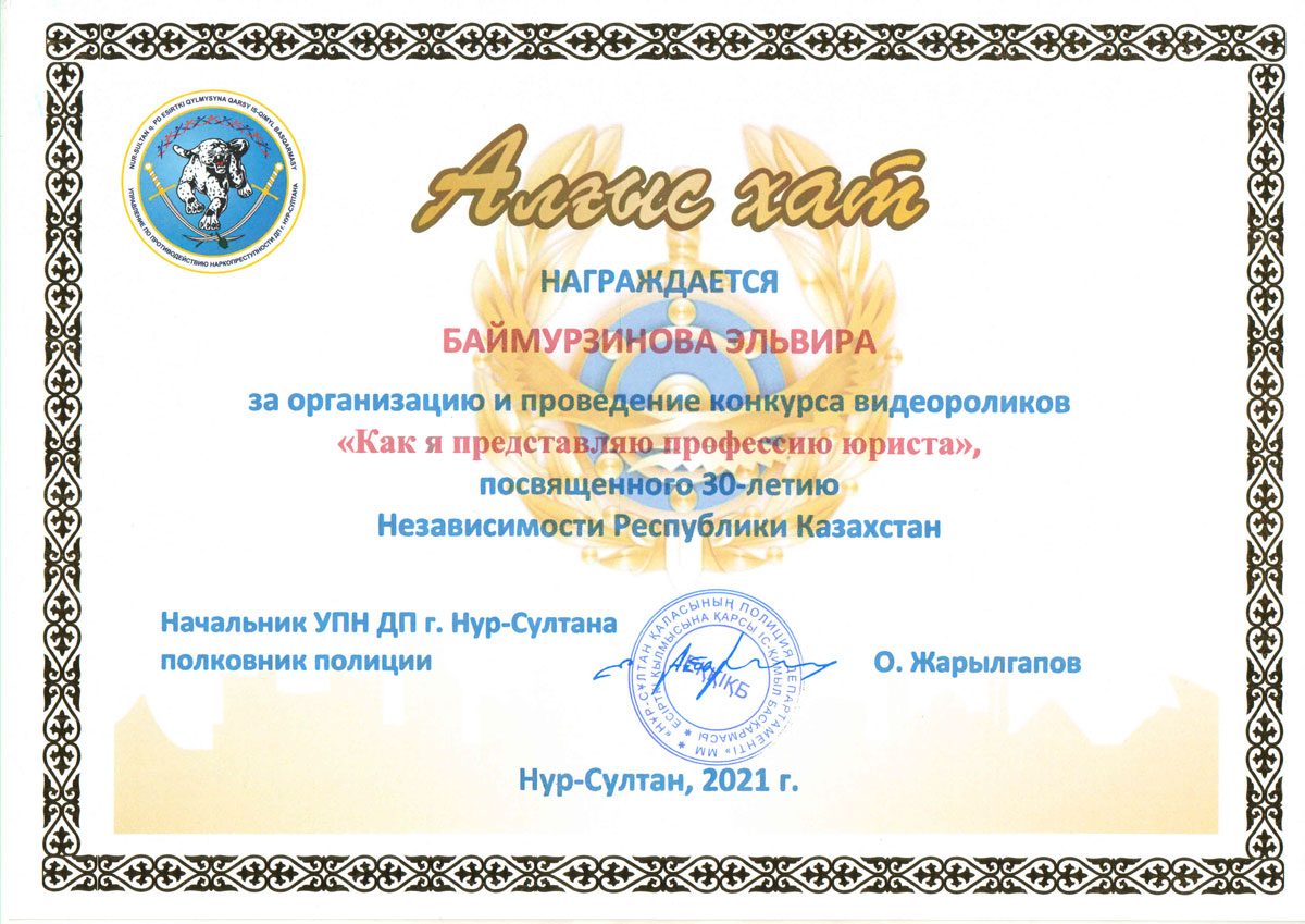 Победители конкурса награждены грамотами и призами УПН ДП г.Нур-Султан.