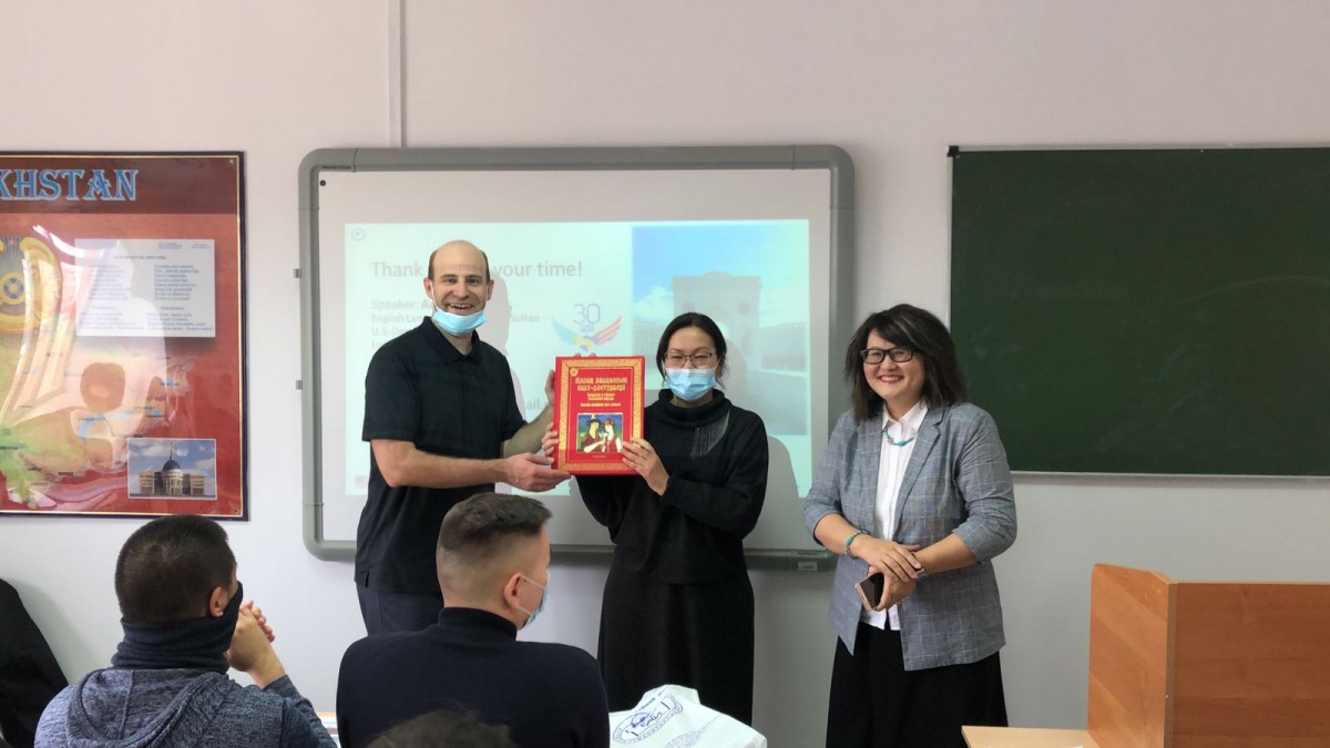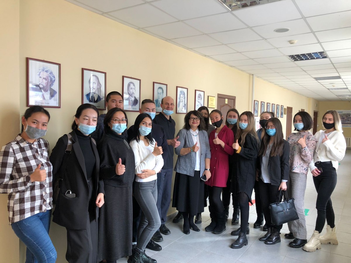 3 ноября 2021 года на кафедре иностранных языков состоялось очередное заседание клуба разговорного английского языка «English speaking club» с участием носителя языка August Garnsey (English Language Fellow Nur-Sultan, Kazakhstan U.S. Department of State, English Language Programs). Тема встречи: «Color and business idioms». В работе клуба активное участие приняли студенты четвертого курса образовательных программ «Иностранный язык: два иностранных языка» и «Переводческое дело». На встречи присутствовали декан Кемайкина Т. Н., заведующая кафедрой иностранных языков Волкова Л.В., заместитель заведующего кафедрой иностранных языков Аренова Г.У., старший преподаватель Сарсенова А.М.