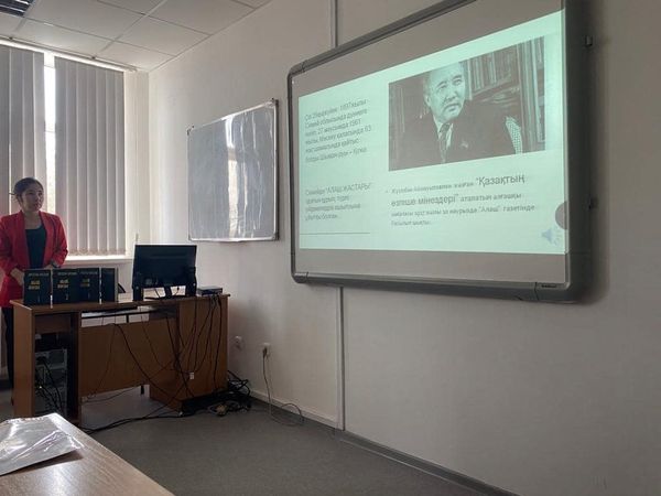 12 ноября 2021 года доцент кафедры казахской и русской филологии Гульмира Райнбекова провела открытое занятие на тему “Литературное наследие М. Ауэзова” для студентов образовательной программы “Иностранный язык: два иностранных языка”.