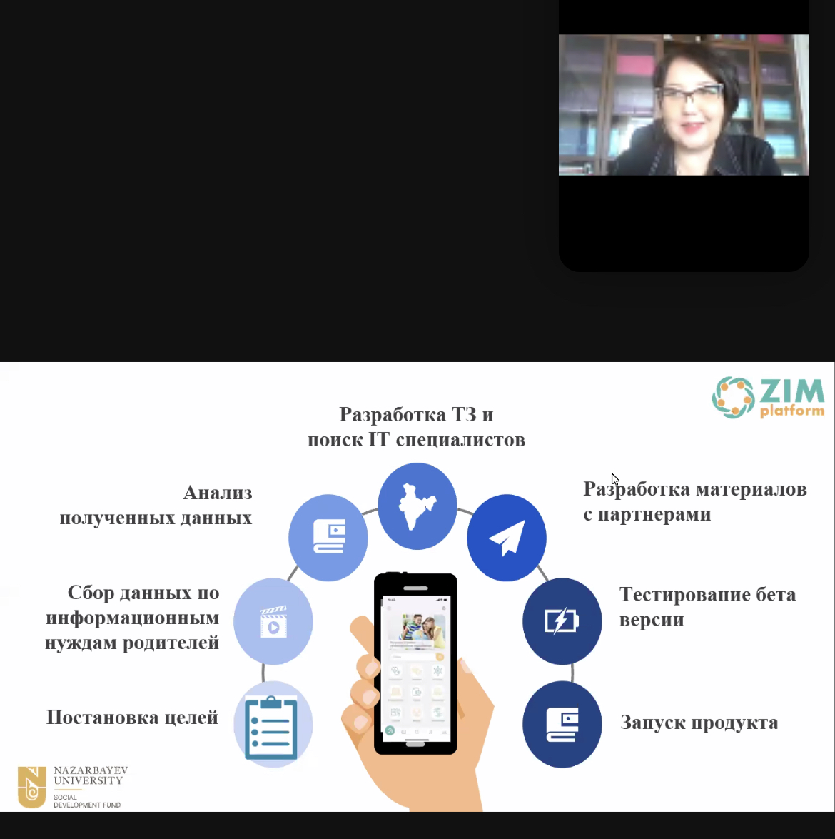 Спикерами на вебинаре выступили представители Проектной команды Ozim Platform – инициативная группа выпускников ВШО Назарбаев Университета в составе Асем Тажиевой (основатель и руководитель Проектной команды Ozim Platform), Даны Мамбеталиной (со-основатель и менеджер), Марии Ипполитовой (со-основатель и менеджера).