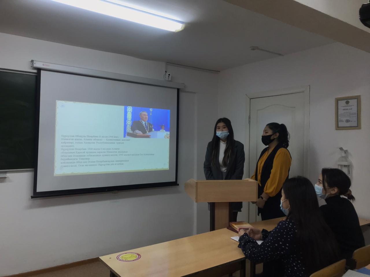 В ходе кураторского часа были обсуждены вопросы о роли Первого Президента страны Нурсултана Абишевича Назарбаева для казахского народа, о новых переменах в истории нации.