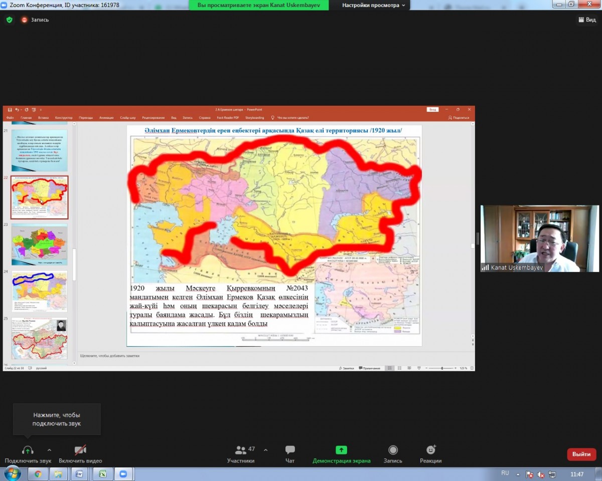 2 декабря 2021 г. в соответствии с планом мероприятий по реализации Программы «Рухани жаңғыру» и в рамках празднования 30-летия Независимости Республики Казахстан кафедрой педагогики был проведен круглый стол на тему «Определение и формирование Казахских границ в ХХ-ХІ вв». В мероприятии вместе с ППС и студентами кафедры приняли участие представители всех структурных подразделений инститиута. Перед слушателями выступили профессор, к.и.н. К.С. Ускенбаев и профессор, к.и.н. А.Ж.Аманбаев. В ходе заседания состоялся обмен мнениями по обсуждаемым вопросам.