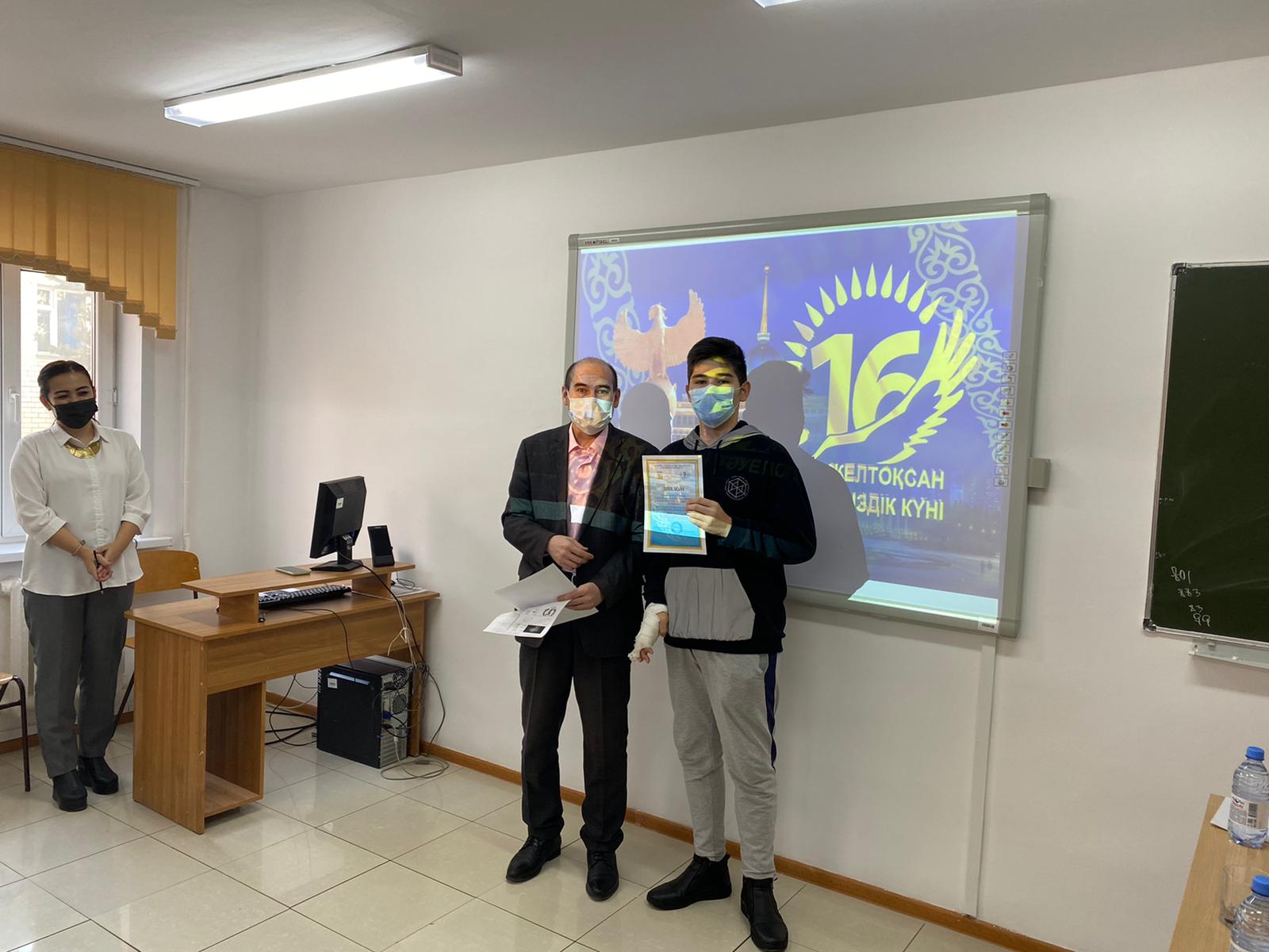 По итогам интеллектуальной игры команда ЮК-20-01 «Тәуелсіздік тарландары» одержала победу. Второе место заняла команда» Азат «(ЮК-21-02), третье место заняла команда «Фемида» (ЮК-21-01).