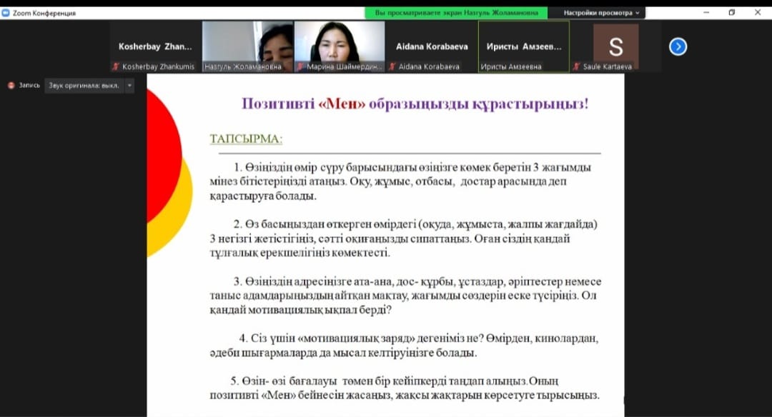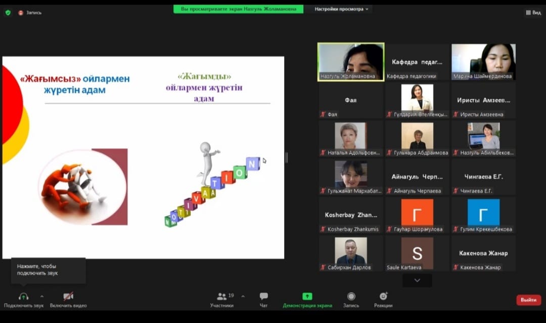 24 декабря 2021 года психолог Евразийского гуманитарного института Болатбекова Н.Ж. провела обучающий семинар-тренинг на тему «Психологическое здоровье педагогов». В рамках взаимного сотрудничества преподаватели «Политехнического колледжа» г. Нур-Султан и преподаватели института приняли участие в мероприятии.