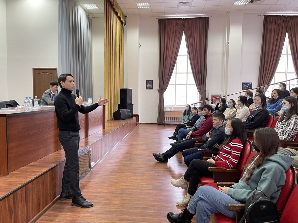 В ходе мероприятия были обсуждены вопросы развития у студентов навыков предпринимательского мышления, активной жизненной позиции, ответственности за свой выбор. Спикер Сулейменов О. сделал акцент в своем докладе на новое поколение казахстанцев. Своим примером он показал, насколько важно быть динамичным, любознательным, инициативным и креативным человеком, дал полезные советы всем молодым людям для достижения успеха в дальнейшей жизни.