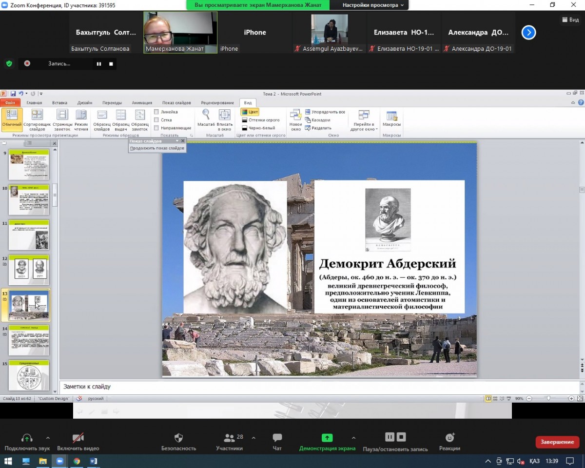 Студентам был также представлен опыт реализации непрерывного педагогического сопровождения детей с особыми образовательными способностями в Карагандинской области по принципу «садик – школа – колледж – предприятие».