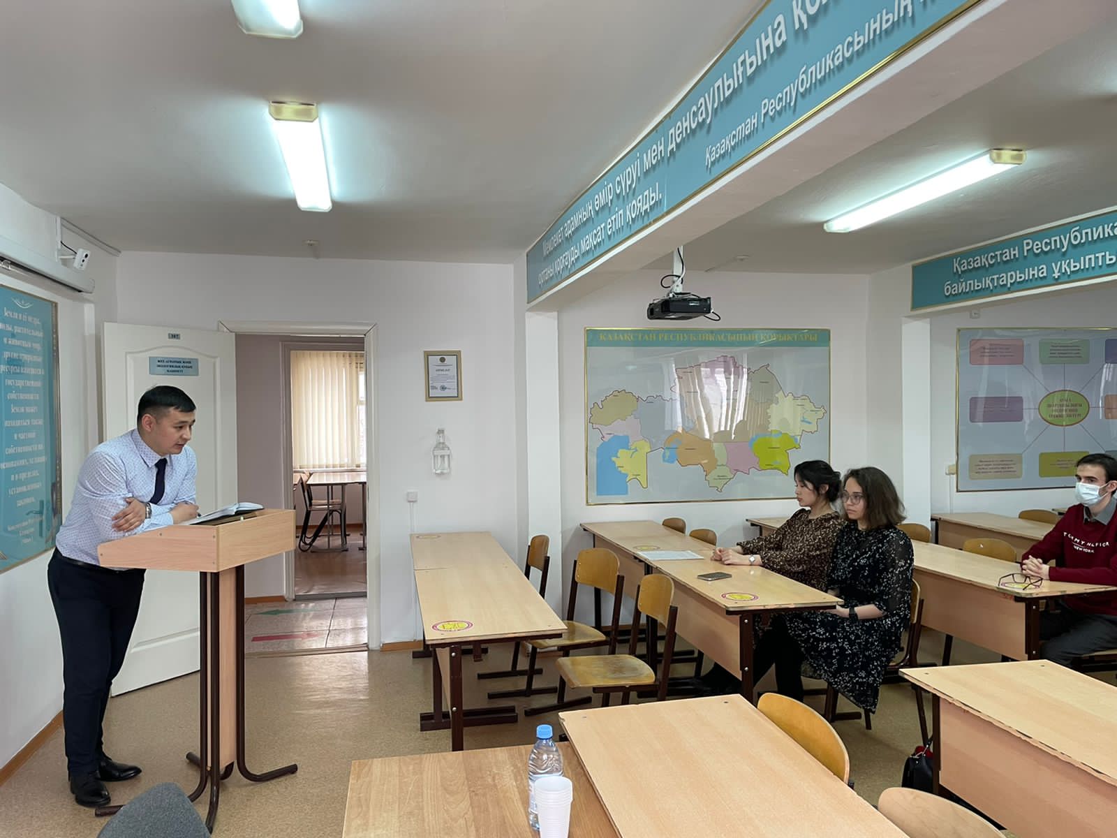 С 24 марта по 1 апреля 2022 года в целях исполнения положений Меморандума о сотрудничестве начальником отдела по расследованию преступлений против общественного порядка следственного управления Департамента полиции г. Нур-Султан, майором полиции Жумахметовым Р.К. для студентов образовательной программы «Юриспруденция» были проведены гостевые лекции на следующие темы: