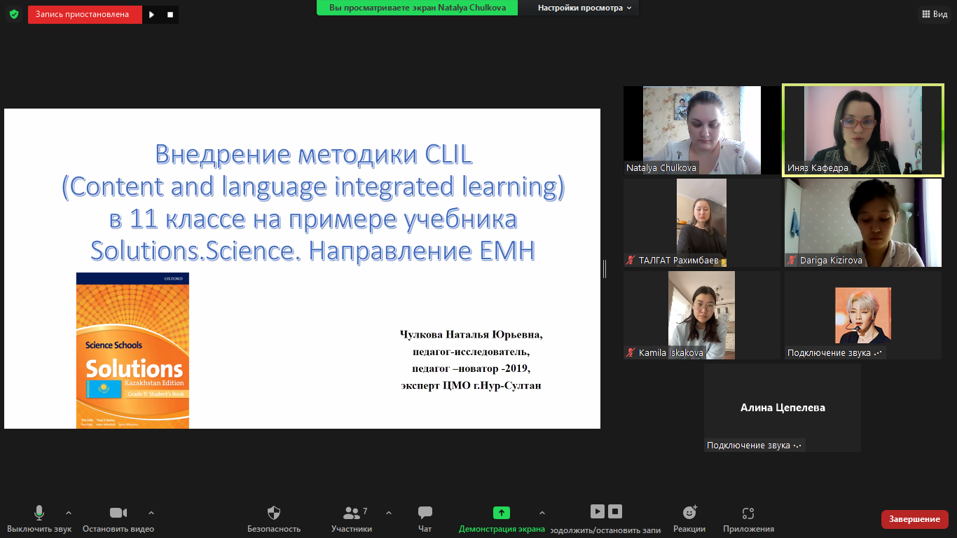Наталья Юрьевна поделилась практическим опытом введения новой методики, рассказала про переход на обновленное образование с использованием технологии CLIL в старших классах средней школы.