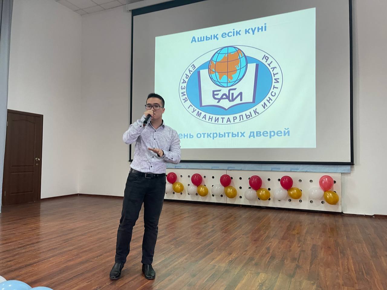 День открытых дверей – одно из главных событий в ЕАГИ. Основная цель мероприятия – познакомить школьников и их родителей с институтом, с кафедрами и образовательными программами, рассказать об условиях обучения и правилах поступления, преимуществах института, профессиональной практике студентов и перспективах трудоустройства после окончания ВУЗа. С приветственными словами к присутствующим в зале обратились: и.о. ректора ЕАГИ, к.п.н., профессор Исмаилов А.Д., проректор по учебной и научной работе, к.и.н., профессор Ахметов К.А., проректор по воспитательной работе, к.п.н., профессор Оспанова Я.Н., председатель КДМ Шакенова А. Ш., ответственный секретарь приемной комиссии ЖантаеваА.К. Они подчеркнули приоритетную важность выбора вуза и профессии, поделились информацией о внеучебной деятельности в институте и представили презентацию о студенческой жизни ЕАГИ. Яркие творческие номера студентов украсили мероприятие.