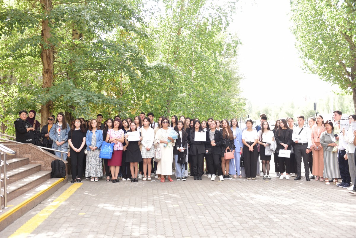 Победители в номинации «Лучший студент года-2022», Президент студенческого Парламента Абильдина Айгерим и координатор волонтерского центра ЕАГИ Брюхова Полина поздравили студентов первого курса, пожелав им успехов в учёбе, активности и инициативности в общественной и научной жизни института.
